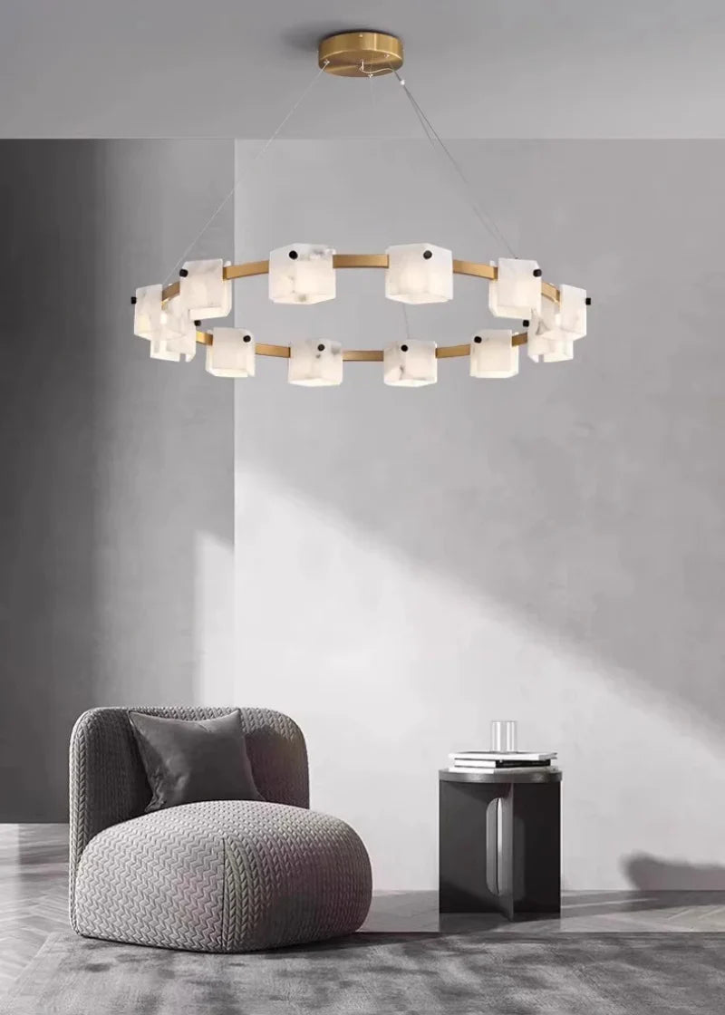 - Configuration: Circular chandelier with rhombus stone shades (as shown)